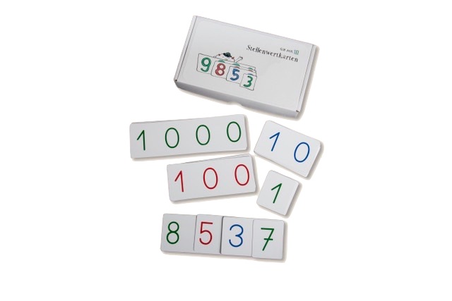 Die Stellenwertkarten können zur Veranschaulichung der Zerlegbarkeit von Zahlen verwendet werden.